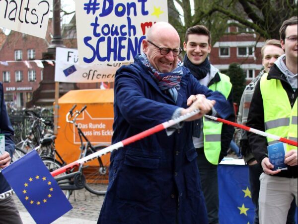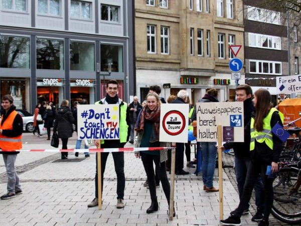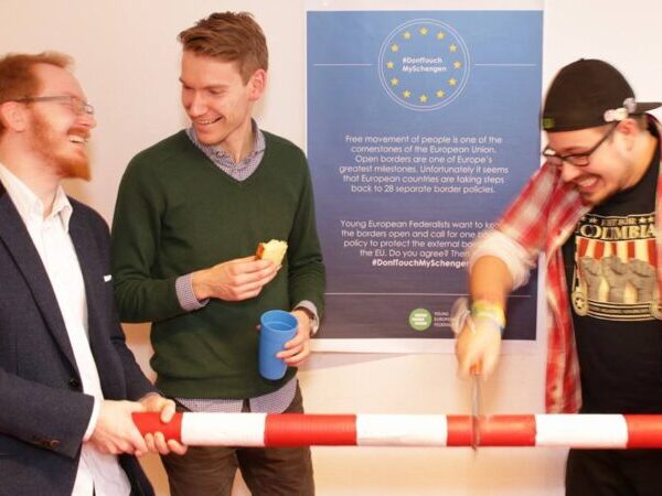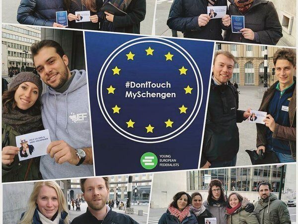Vom 1. bis 7. Februar rief die JEF Europa, der europäische Dachverband aller nationalen Sektionen der Jungen Europäischen Föderalisten, dazu auf, sich für den Erhalt der offenen Binnengrenzen stark zu machen. Zahlreiche Straßenaktionen in Deutschland und ganz Europa mit fiktiven Grenzkontrollen und symbolischen Grenzeinreißungen sind daraufhin organisiert worden. Allen soll klar werden, dass die Jugend Europas den Schengen-Raum schützen und nicht auf die europäischen Freiheiten der Reisefreiheit und der grenzüberschreitenden Arbeitnehmerfreizügigkeit verzichten will und kann.