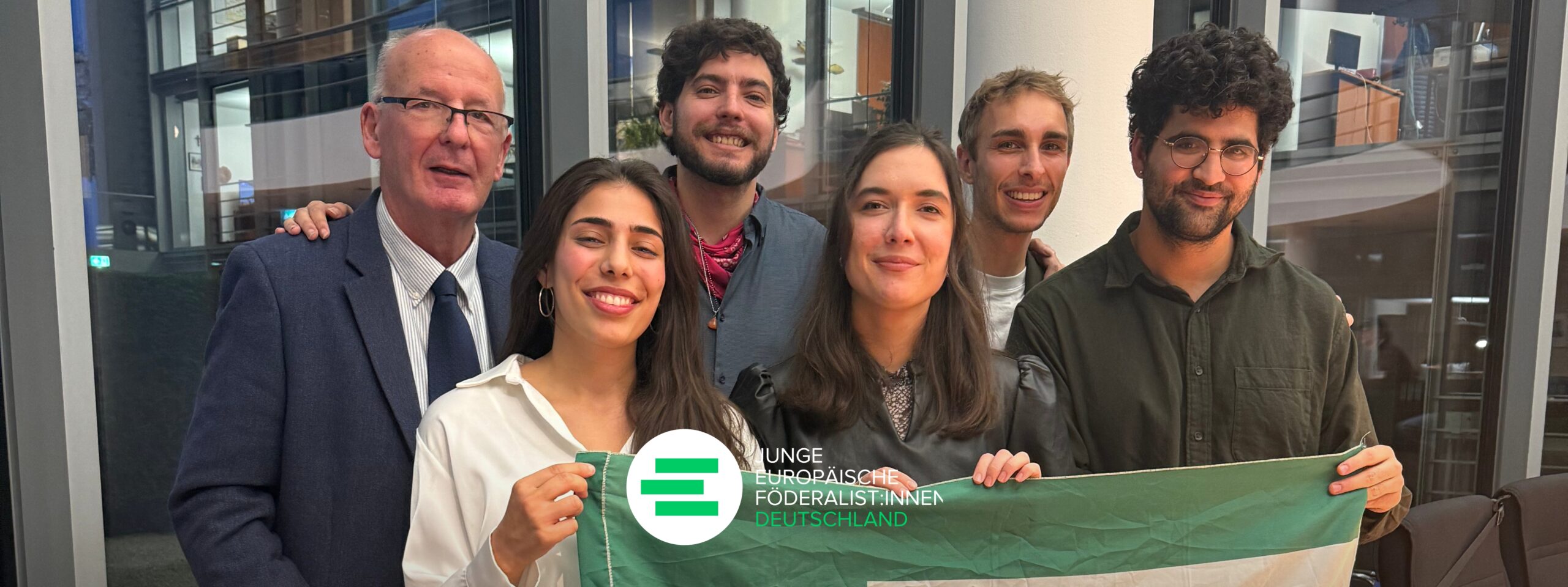 Melanie Thut, Bundesvorsitzende der JEF Deutschland, erinnert an Europas Anfang: „Alles begann mit bilateralen deutsch-französischen Jugendprojekten.“ Aus Feinden wurden Partner, aus Nationalstaaten ein Friedensprojekt – mit der israelisch-palästinensischen Bewegung hin zum Föderalismus sei nun der erste Schritt in die Richtung des Friedens getan.